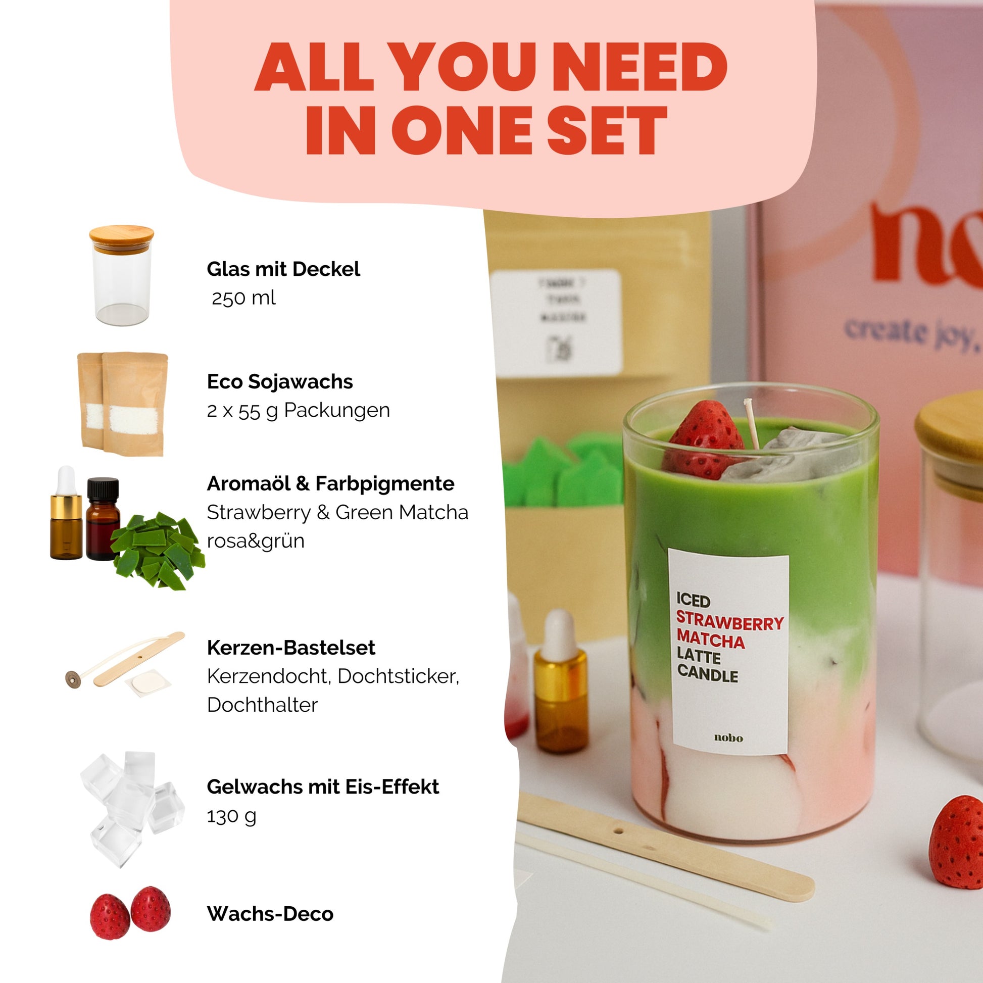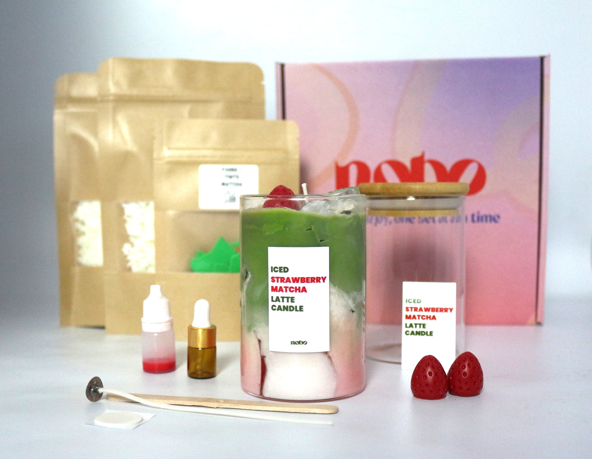 Erlebe, wie entspannend und schön DIY sein kann – mit dem nobo Iced Strawberry Matcha Candle Kit 💖