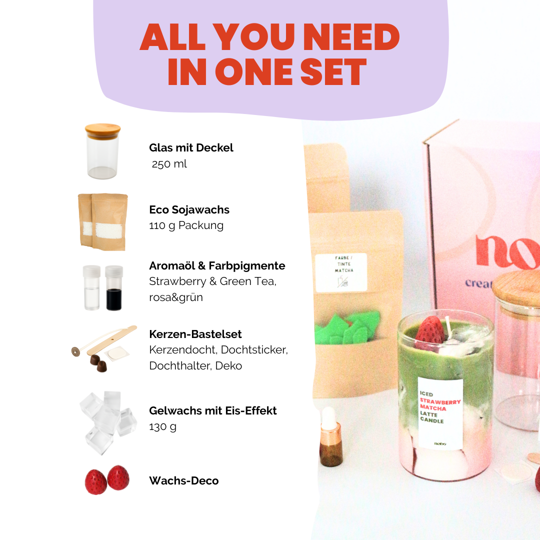 Iced Strawberry Matcha Candle DIY Kit – Mach deine eigene ästhetische Duftkerze